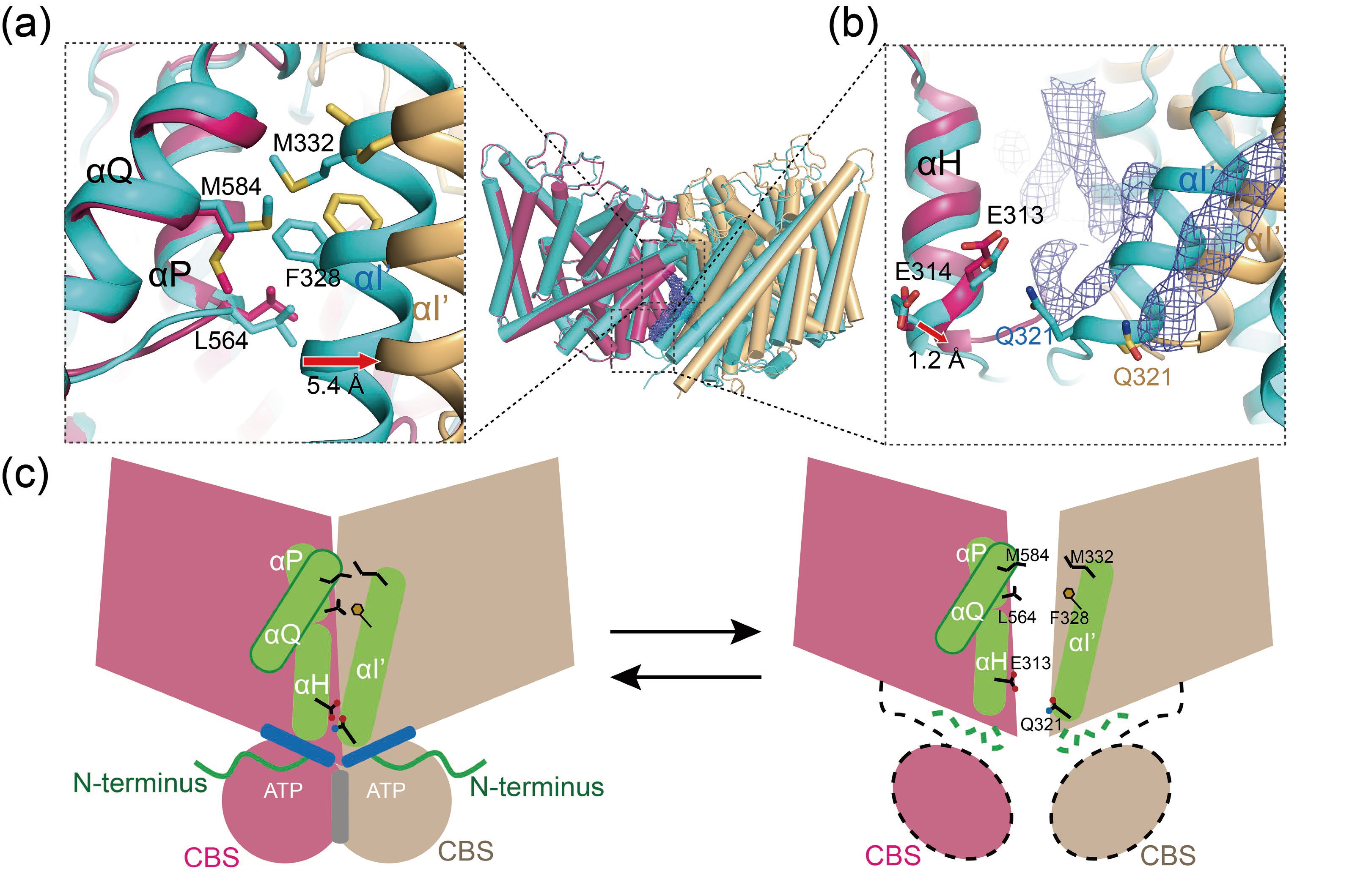 CLC-7 functions as a Cl−/H+ exchanger in lysosomes. Defects in CLC-7 and its β-subunit, Ostm1, result in osteopetrosis and neurodegeneration. Here, we present the cryogenic electron microscopy (cryo-EM) structure of the human CLC-7/Ostm1 complex (HsCLC-7/Ostm1) at a resolution of 3.6 Å. Our structure reveals a new state of the CLC-7/Ostm1 heterotetramer, in which the cytoplasmic domain of CLC-7 is absent, likely due to high flexibility. The disordered cytoplasmic domain is probably not able to restrain CLC-7 subunits and thus allow their relative movements. The movements result in an approximately half smaller interface between the CLC-7 transmembrane domains than that in a previously reported CLC-7/Ostm1 structure with a well-folded cytoplasmic domain. Key interactions involving multiple osteopetrosis-related residues are affected by the interface change.