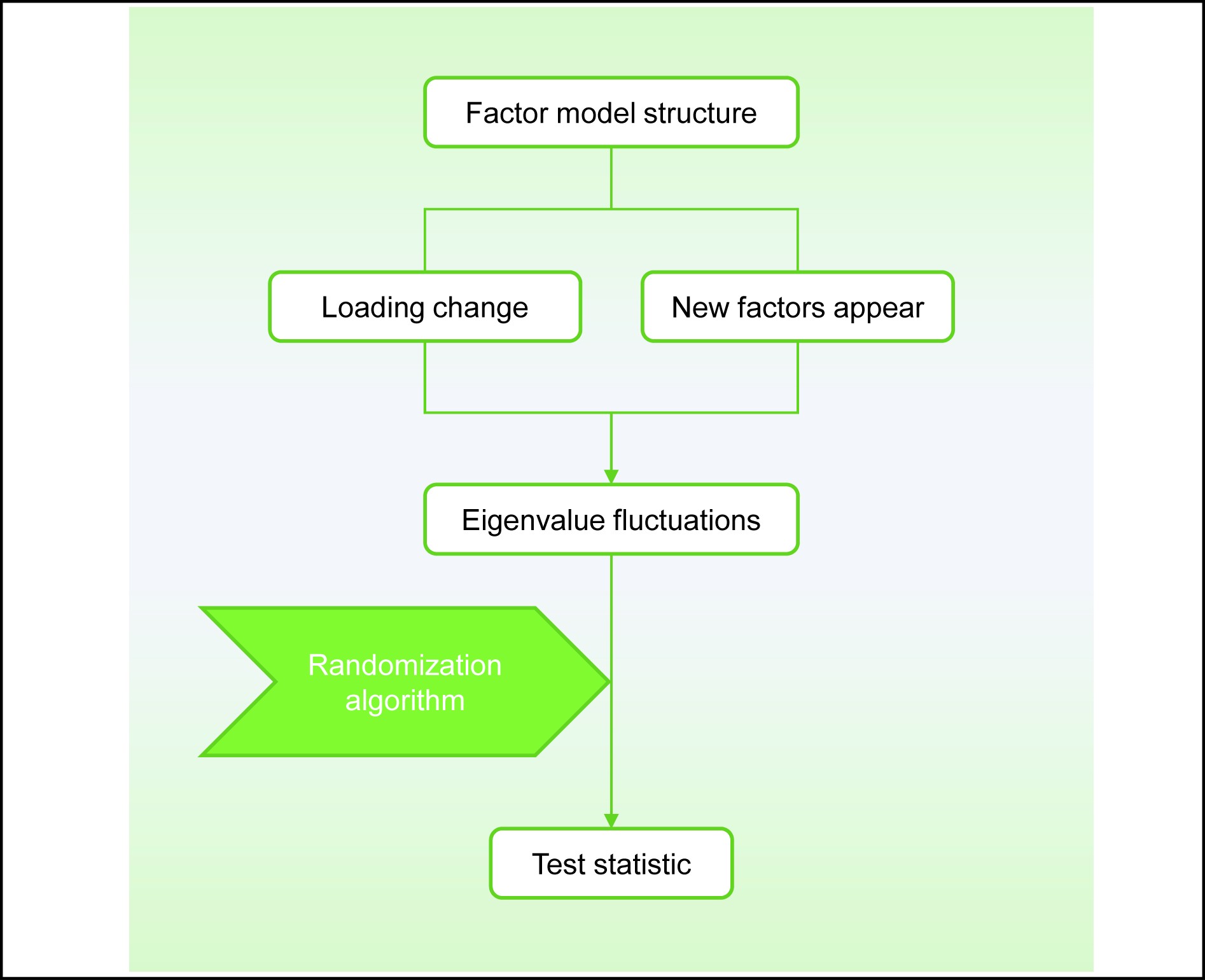 We consider the fluctuation of eigenvalues in factor models and propose a new method for testing the model. Based on the characteristics of eigenvalues, variables of unknown distribution are transformed into statistics of known distribution through randomization. The test statistic checks for breaks in the structure of factor models, including changes in factor loadings and increases in the number of factors. We give the results of simulation experiments and test the factor structure of the stock return data of China’s and U.S. stock markets from January 1, 2017, to December 31, 2019. Our method performs well in both simulations and real data.